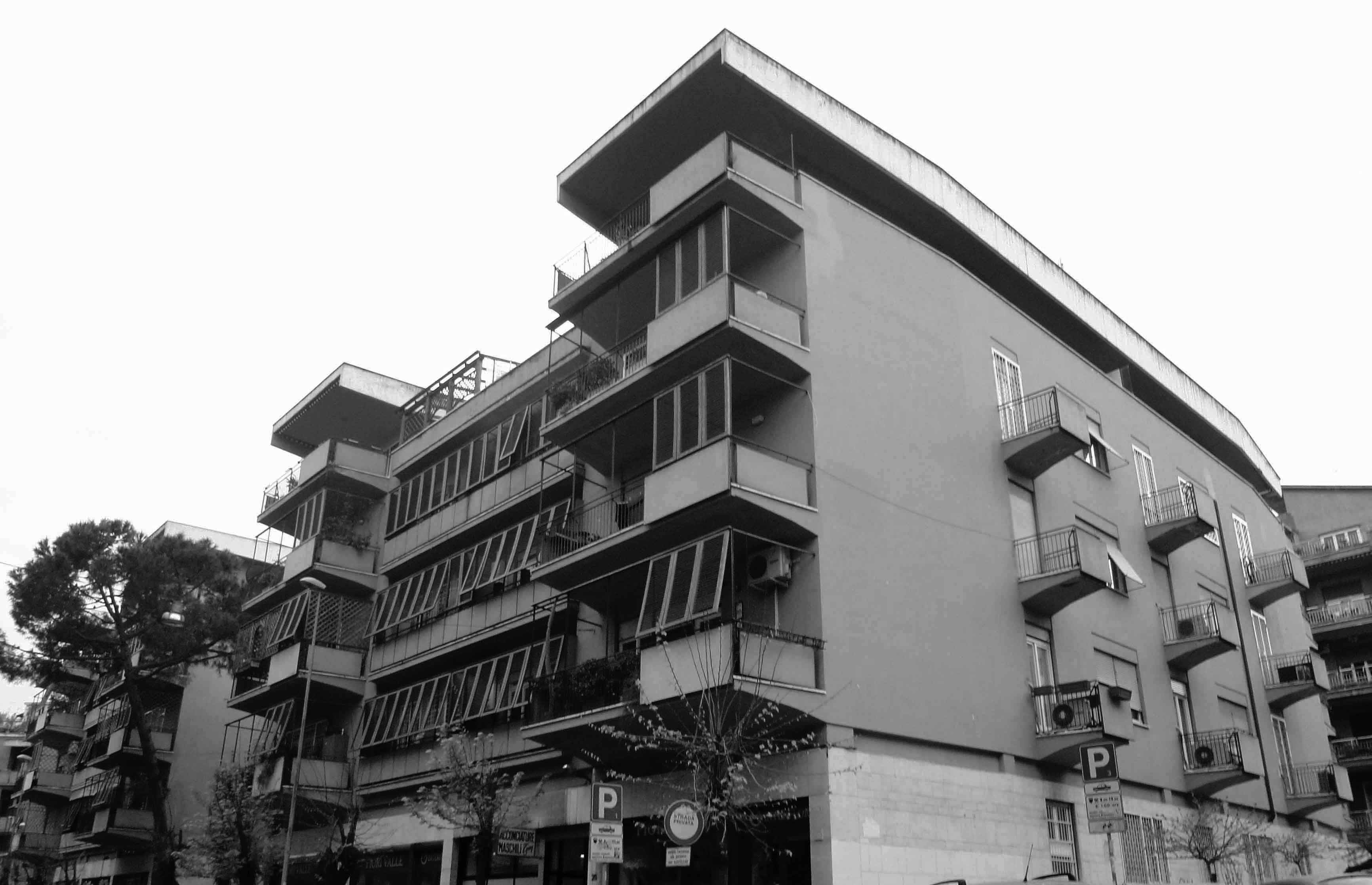 Questo scatto della tradizione della linea che dai tempi del Bauhaus con corpo doppio e affaccio passante su lati opposti diventa a corpo triplo con doppio affaccio su lati rigiranti avviene esemplarmente a Roma dove industria edilizia, l’unica veramente trainante l’economia del suo territorio, e cultura architettonica costituiscono la più grande fucina sperimentale per la residenza alto e poi anche piccolo borghese in Europa, con esiti inevitabili anche per la residenza popolare con le ricadute edilizie leggibili nella periferia abusiva dove gli stessi operai che costruivano i Parioli alzavano le loro palazzine ma distillate da superfetazioni linguistiche, ribasizzando quasi in senso medievale il linguaggio architettonico.