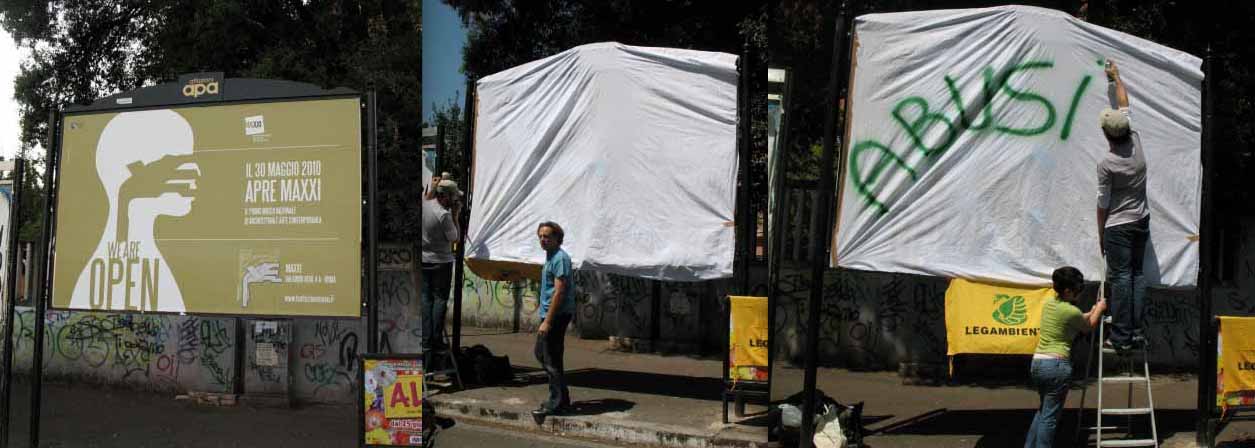 I volontari di Legambiente hanno oscurato un manifesto in piazza Volsinio, zona Trieste. E’ la prima di tre azioni contro le pubblicità che soffocano la capitale …
