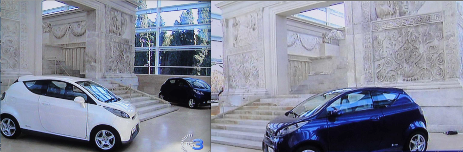 Le due auto sono disposte infatti con stucchevole simmetria, come stanno tradizionalmente il bue e l’asinello nella Grotta della Pace di Roma-Betlemme.