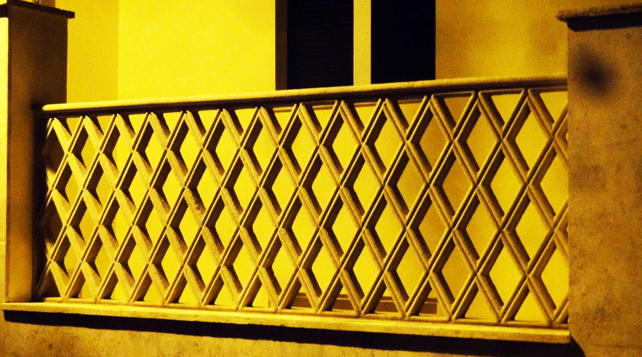 A Roma un pò dappertutto, specialmente nei quartieri inizi Novecento, quando si era soliti decorare gli eleganti condomini con cancellate in ferro battuto. Tutto questo ferro venne poi, più o meno volontariamente, donato alla Patria durante l’ultima guerra. Allora le inferriate, come dice il titolo, vennero autarchicamente sostituite con questi manufatti in cemento.