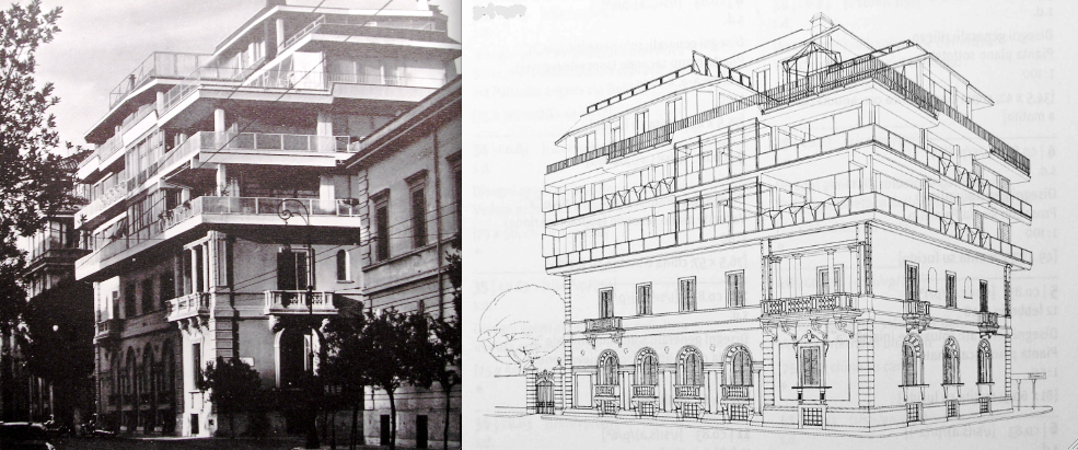 Indubbiamente é una cosa molto spiritosa. Mi ricorda una vecchia storia di Topolino e Pippo. Bene! Pippo, abitava in una sgangherata stamberga “balloon frame” con grande dispiacere del suo amico topo. Capita a Pippo di fare una grossa vincita e Topolino lo convince a rinnovare la sua abitazione. Passa del tempo e Topolino, saputo che i lavori sono finiti, va a visitare l’amico. Lo trova in giardino, davanti al nuovo edificio che si è sopraelevato di un piano. La sopraelevazione le sette invarianti ce l’ha tutte! Elenco, Asimmetria, Tridimensionalità antiprospettica, Scomposizione quadrimensionale, ecc. ecc. (Interessante che anche il disegnatore della Disney fosse informato del nuovo linguaggio!). Topolino, piacevolmente sorpreso, fa i complimenti all’amico. Però l’edificio ha qualcosa di strano. Tutto il piano terreno è rivestito di un pesante tendaggio! Topolino chiede all’amico qual’è il senso di tutto quel tessuto. Pippo schiaccia orgogliosamente un pulsante e il tendaggio scorre via velocemente svelando all’attonito topo che la stamberga è rimasta al suo posto tale e quale. Il saggio Pippo, seguendo i consigli dell’amico, ha investito il suo denaro per un edificio più moderno ma non ha saputo rinunciare al calore delle vecchie travi, all’ombra del portico tarlato e agli infissi pericolanti. Ero piccolino ma sono rimasto a lungo a ragionare su quella tavola. Dove era più congruo abitare? Nella comodità del secondo piano con tutti i servizi o nella comoda tana sottostante, adattatasi come un guanto alla strana personalità di Pippo? Anche adesso davanti a questo disegno, minimamente offeso per “lesa maestà” dallo strano “sperimento” su questo banale palazzotto “fin de siecle” (recentemente mi è capitato di vedere qualcosa di altrettanto azzardato a Madrid, lungo la Gran Via), mi chiedo: dove vorresti andare ad abitare, avendo la possibilità di scegliere? Nei luminosi spazi dei piani superiori o nelle umbratili stanze dei piani inferiori? Chissà? Se fossi più giovane apprezzerei forse l’avventurosa sopraelevazione (qualcosa di simile agli ambienti del film di Roman Polanski, “Che?”). Adesso, acquietato dall’età, non mi dispiacerebbe, con un altro forse, il silenzio dei corridoi e il mistero delle stanze plurigenerazionali dei piani di sotto (qualcosa di simile agli ambienti del film di Ettore Scola, “La Famiglia”).