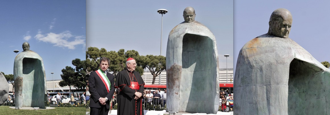 Sembra una garitta.Ennesimo ritratto caricaturale di questo Papa.Ma non si riesce piu’ a fare una statua NORMALE?…Che brutta…