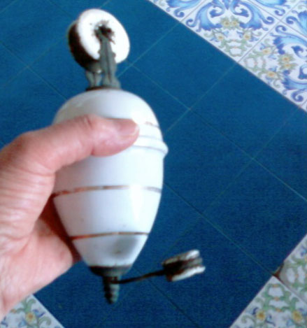 Contrappeso in ceramica, con pallini di piombo all’interno, per regolare la sospensione della lampada dal soffitto.