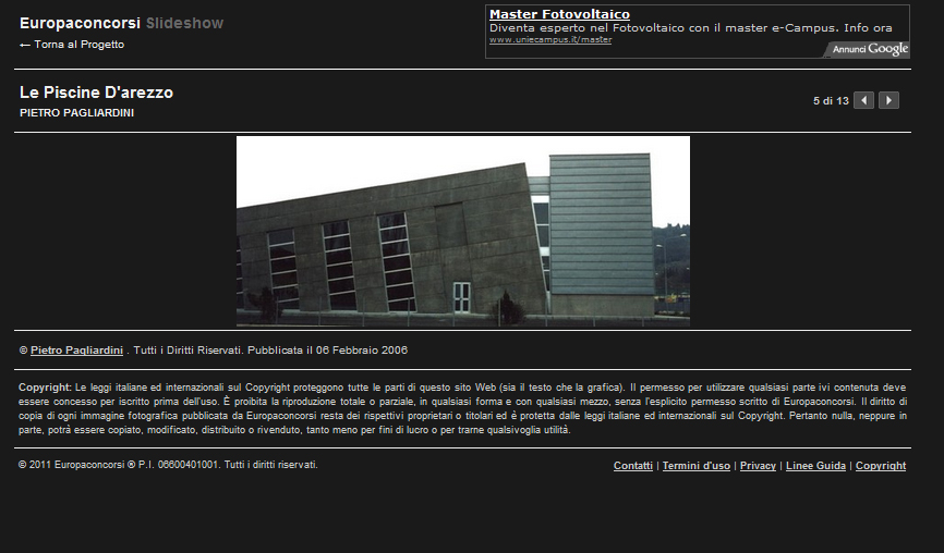 A quel G una sola precisazione: quello è un project, uno dei primi in Italia, ne vado piuttosto orgoglioso, non è un incarico pubblico, ma di un privato. I soldi pubblici ci sono stati messi, tuttavia, a circa il 40% del costo. Il resto dal privato.