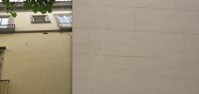 era l’occasione per porre rimedio ad errori di vecchie manutenzioni ed invece si è perseverato: uno spesso strato di pittura ha, ancora di più, cancellato il bugnato piatto ad intonaco che decora la facciata dei piani superiori.