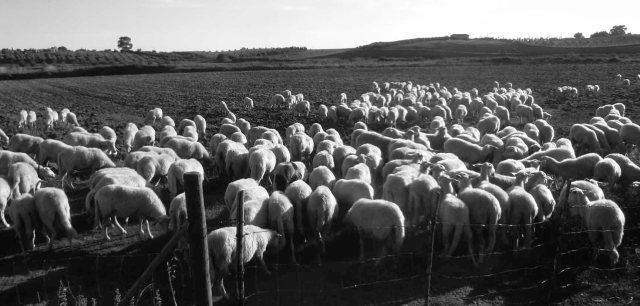 Questa immagine mi ricorda la campagna intorno alla quale mi trovo ora, nel Cheshire a confine con il Galles, anche se tutte ste pecore (o pecoroni) mi rammentano tanti colleghi che riuniti in gregge seguono la strada impostagli dal loro pastore.