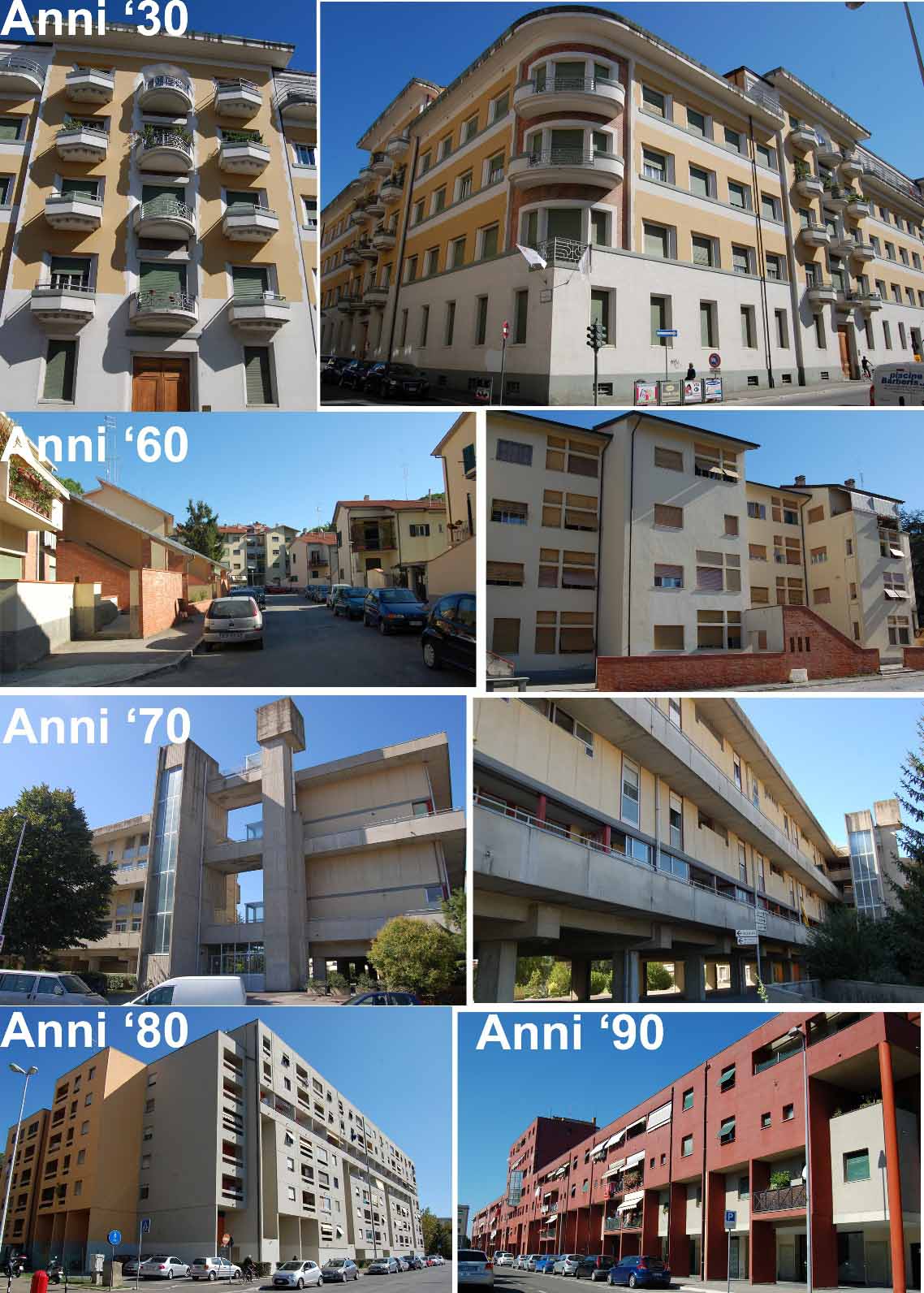 le mando una cartolina con una storia sintetica, estrema e parziale dell’edilizia popolare ad Arezzo. E’ la mia sintesi, ovvio. Ci sono, per ciascun periodo, esempi migliori e peggiori e questi mi sono sembrati solo più rappresentativi.