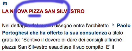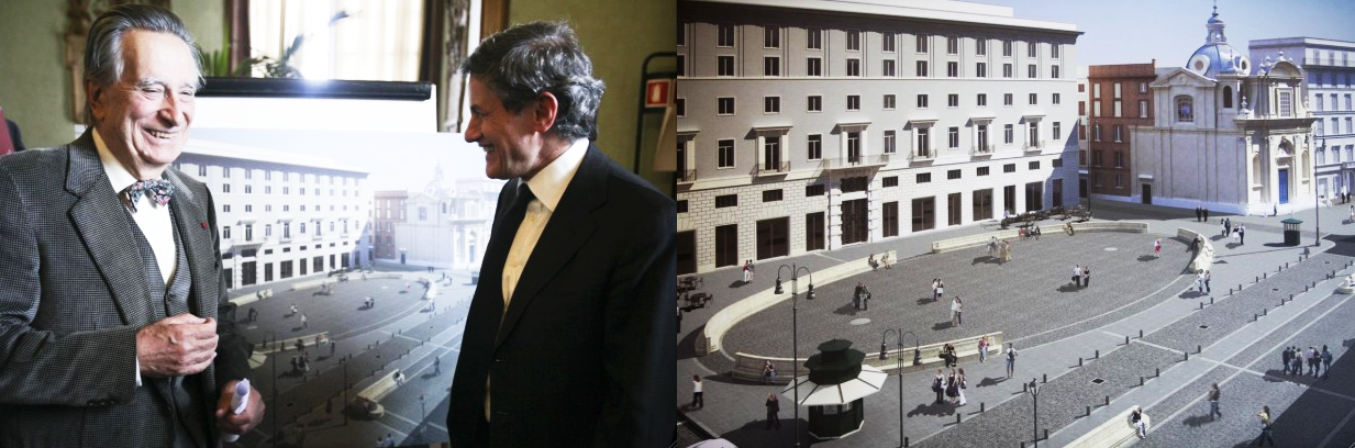 Sono andato su Google earth a cercare Piazza San Silvestro, perché non capivo bene quella divisione della piazza in due parti separate dalla strada. In verità Portoghesi ha seguito la stessa scelta del progetto originario, mi pare di capire, forse perché era stabilita dal piano del traffico, forse perché i lavori erano già avviati, forse perché anche Michelangelo non lavorava gratis o forse perché crede in quel progetto, non saprei.