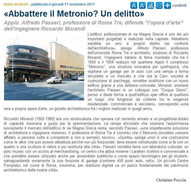 Ricordo, quando da studente vivevo in via Lidia, che con i miei amici ci chiedevamo come fosse possibile che una simile bruttura fosse stata realizzata così vicino ai meravigliosi complessi “popolari” costruiti da Camillo Palmerini a Piazza Tuscolo e da Martini e Vicario in via Magna Grecia … a quei tempi ovviamente non sapevo chi fossero gli architetti di quei complessi che, solo per ragioni estetiche, ci affascinavano.