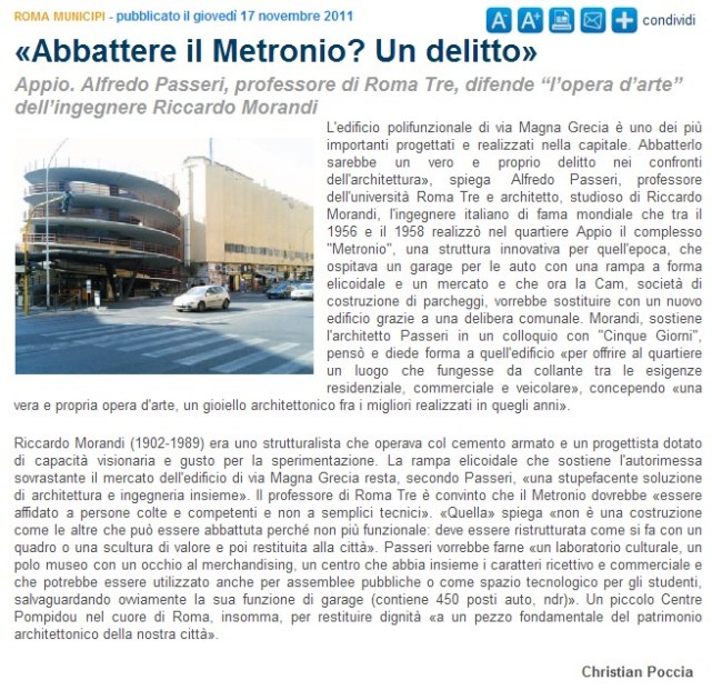 Differenza non da poco per una discussione serena. Non si tratta cioè di giocare sulla pelle di chi ci vive, come al Corviale, non si tratta di piegare le condizioni di vita di migliaia di persone alla soddisfazione, tanto dispendiosa quanto intellettualistica, di mantenere in vita una “testimonianza” di un periodo storico, ancorchè ideologicamente negativo. Si tratta di un edificio in cui l’elemento di valutazione sul da farsi non può prescindere da come l’opera si rapporta al contesto e dalla qualità dell’opera stessa, che sotto il profilo strutturale non è affatto banale ed ha una sua storia.