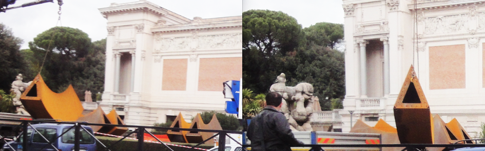 Orrorre! Non ho altre parole per descrivere l’arroganza del cattivo gusto che impazza nelle nostre città d’arte: dalla destra alla sinistra nulla cambia. Si tratta di una modificazione genetica del concetto di arte di fronte alla quale si può fare ben poco. Comunque, la catalogazione degli orrori sarebbe qualcosa di nuovo rispetto alla storia dell’arte. Fin qui si è fatta la storia del bello, variamente inteso, da qui si fa la stopria del brutto. Se questo è il momento!