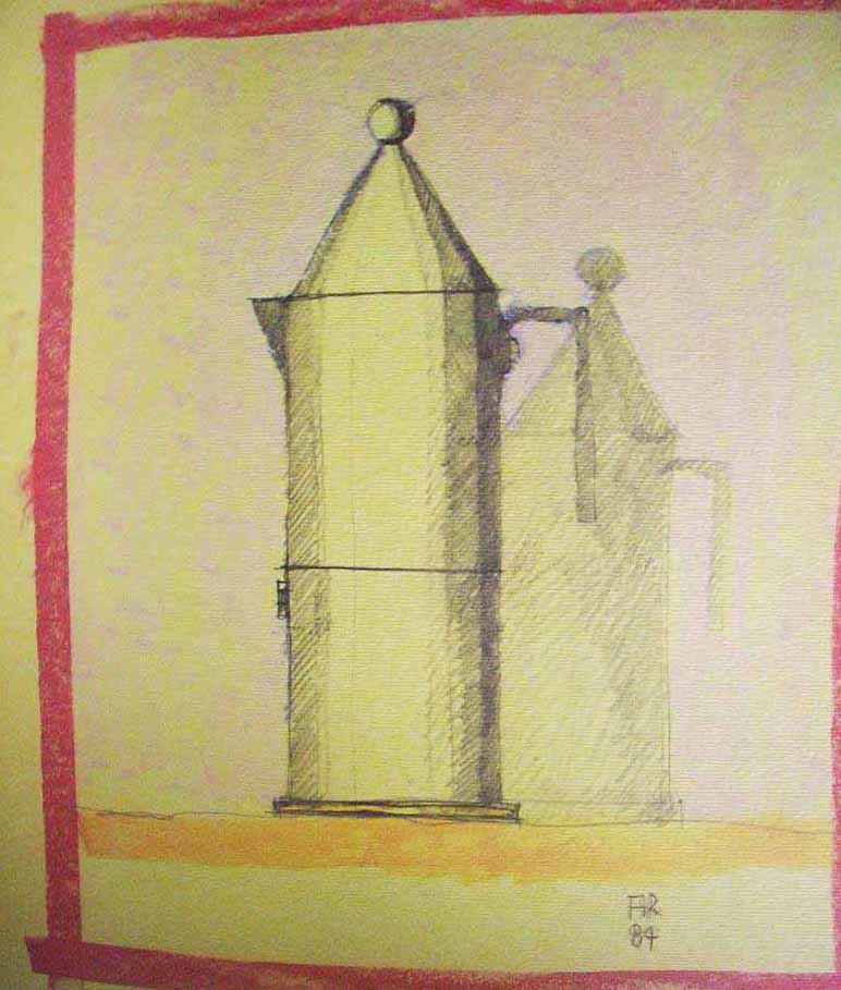Grazie, aldofree, per l’informazione. Il suo link conferma ciò che faceva notare Giancarlo Galassi: le caffettiere Alessi hanno il loro logico basamento. Il basamento, la struttura da cui non si può prescindere anche per l’edificio bramantesco mai terminato in Via Giulia e argutamente riportato in immagine qui sotto, trasforma un oggetto di vasto consumo in un piccolo oggetto architettonico. Per questo la caffettiera, su di un ripiano, fà la sua bella figura accanto a qualche modellino tra cui quello per il monumento alla Terza Internazionale di Tatlin che mia figlia fece per il suo secondo anno di corso a Valle Giulia il quale invece basamento non ha, in questo simile, insieme alla sua forma spiraliforme, al “Ginger and Fred” di Gehry a Praga. Boh! Così almeno mi pare!