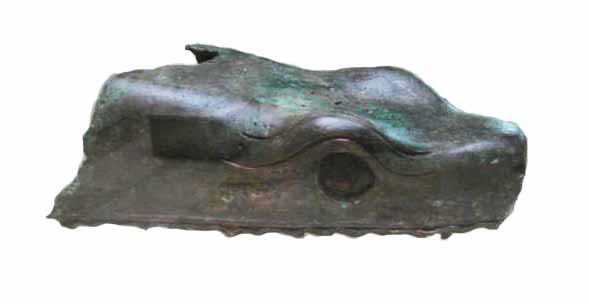 Una delle TRE teste di serpente della bronzea Colonna Serpentina da Delfi, alzata nell’Ippodromo di Costantinopoli. E’ l’unica testa rimasta dopo che, giunta indenne fino al XVIII secolo, venisse capitozzata da un polacco ubriaco. Chissà quale moderno significato possiamo dare a questo manufatto! Forse significa l’Architettura moderna che, avviluppatasi sempre più su se stessa, ha perso completamente la testa? “Quos vult perdere Deus (in questo caso la vaticinatrice Pizia) dementat”. Forse una copia, con l’assenso del meccanico del Centro di Revisione, potrebbe essere alzata nello spazio di risulta tra i TRE edifici segnalati: quello di Pellegrin-Zevi, quello di Vagnetti-Muratori e quello di autore ignoto!