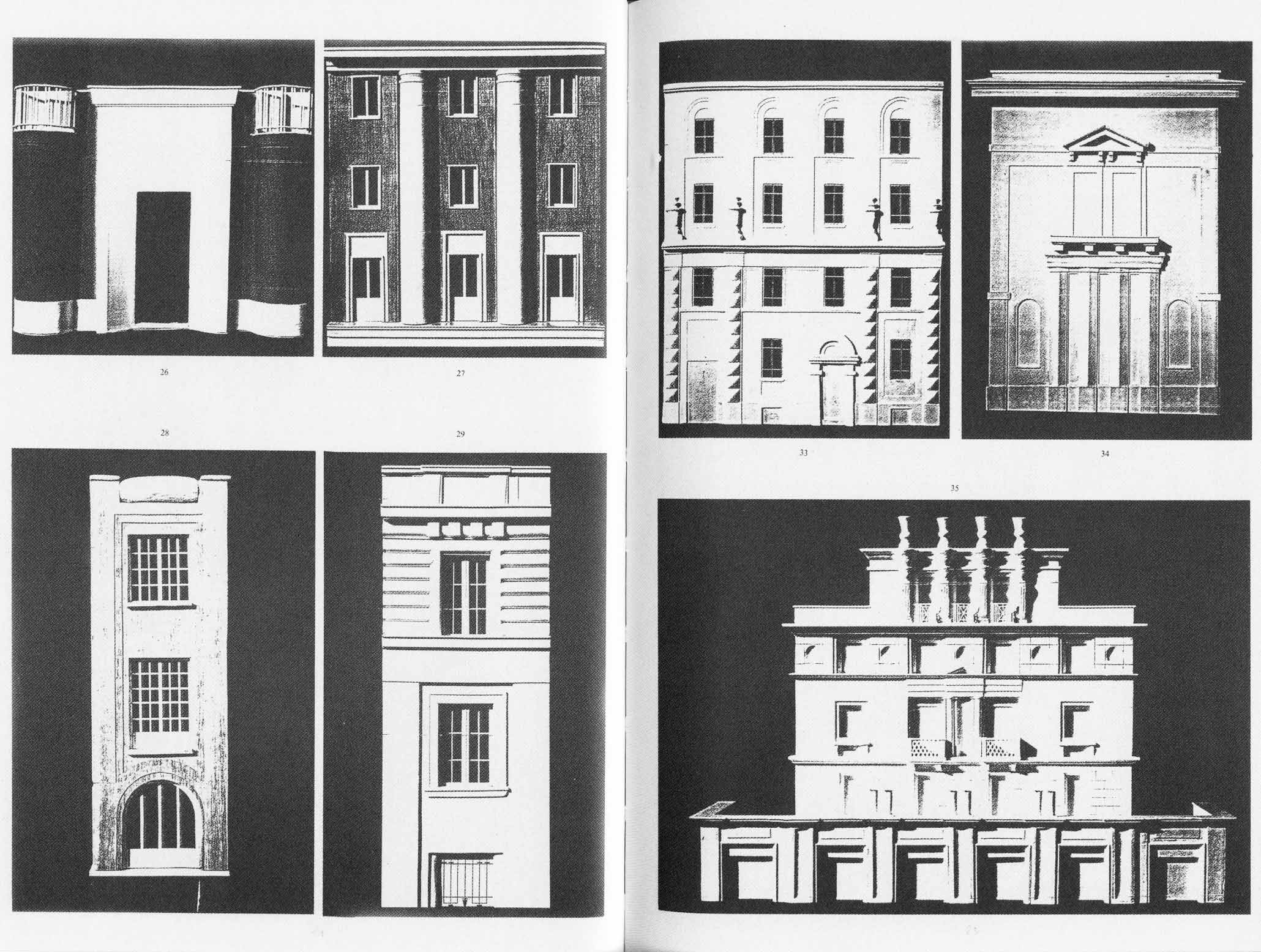 Le case stesse diventano il luogo di questa rappresentazione ove la teatralità dell’immagine prende forma nei volti delle «facciate» diverse che si confrontano, si osservano, si inseguono, si inarcano, si piegano, sì corrugano e si distendono nel viluppo complesso della città amata, vissuta e compresa da tutti. L’angolo diventa il luogo di una svolta che si fa metafora di una realtà più complessa, si carica di segni, di simboli e di significati: