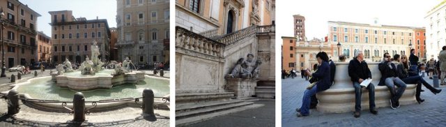 Un conto è sedersi sulle recinzioni delle fontane di Piazza Navona per guardare il teatro della città sentendo alle spalle nello stesso tempo il confortante rumore delle acque, sollazzo per il quale un bel pò di persone si sono industriate per lasciarcelo in eredità, e un conto è sedersi sulle “panchine” avendo alle spalle soltanto il monotono brusio delle chiacchiere di sfaccendati come me. Qua ci vuole assolutamente una fontana ed io spezzo una lancia per lo spostamento in questo luogo della fontana del Rutelli di Piazza Vittorio!