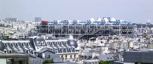 Lo so che è provocatorio e ingiusto, perchè il Centro Pompidou è un posto bellissimo e i progettisti sono dei grandi architetti che ho sempre ammirato, ma quando da Montmartre ho visto spuntare prepotentemente e non di poco quell’astronave variopinta e fuori scala nel meraviglioso panorama dei tetti parigini, ho pensato: che pugno in un occhio!!
