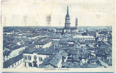 “ … la dolce Lombardia con i suoi giardini, il Monte Rosa è un grande macigno; ci corrono le vette a destra e a sinistra, all’infinito, come negli occhi del prigioniero. È grigio il cielo, laggiù si stendono al piano, infinitamente, i pennacchi tremuli delle betulle, come un tabernacolo gotico. Il cielo è pieno di picchi bianchi che corrono, ma la torre di San Gaudenzio instaura un pantheon aereo di archi dorici di marmo. Sugli spalti una solitaria cerca l’amore. L’aspro vino mi ha riconfortato e dal baluardo un azzurro sconfinato posa sulle betulle, pantheon aereo di colonne, sopra un giardino di Lombardia. Settembre solare denso, dove le betulle emergono nel piano. Lontano, il macigno bianco”.