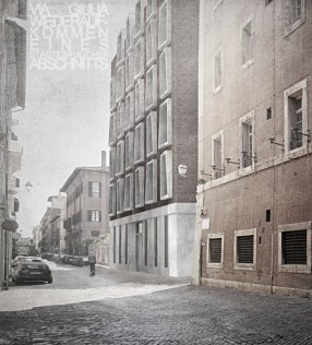 Qual´é il contesto al quale si fa riferimento in Via Giulia; é forse la grandezza di Proporzioni delle carceri nuove di Antonio del Grande,o quella delle “case di Raffaello” presso San Giovanni dei Fiorentini, Il Borrominiano Palazzo Falconieri o forse ancora le strutture in parte medievali sull altura dei Planca Incoronati. La bellezza di Via Giulia é la sua “stratificazione” architettonica;e´ pertanto necessario che in un luogo tale si possa essere testimoni del proprio tempo senza rompere con il passato. (un esempio a mio modesto parere puo esserlo la biblioteca Lateranense a Roma)