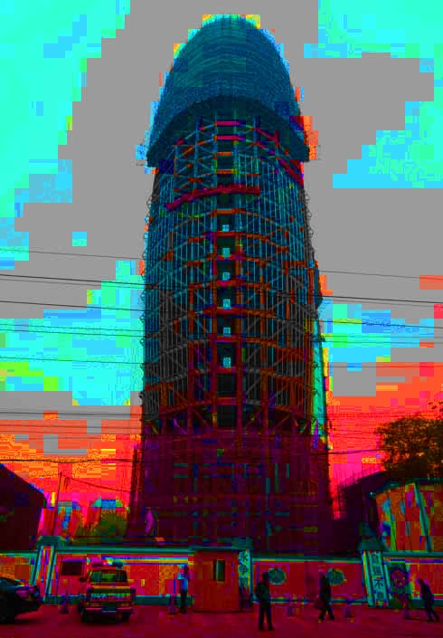 People walk past the unfinished office building of People’s Daily, the official newspaper of the communist party of China, in Beijing May 8, 2013. Some Chinese bloggers ridiculed that the building’s outline, which they claim resembled the male genital, matched perfectly with the China Central Television (CCTV) tower that has been nicknamed “Big Underpants.” REUTERS/Petar Kujundzic (CHINA – Tags: SOCIETY)