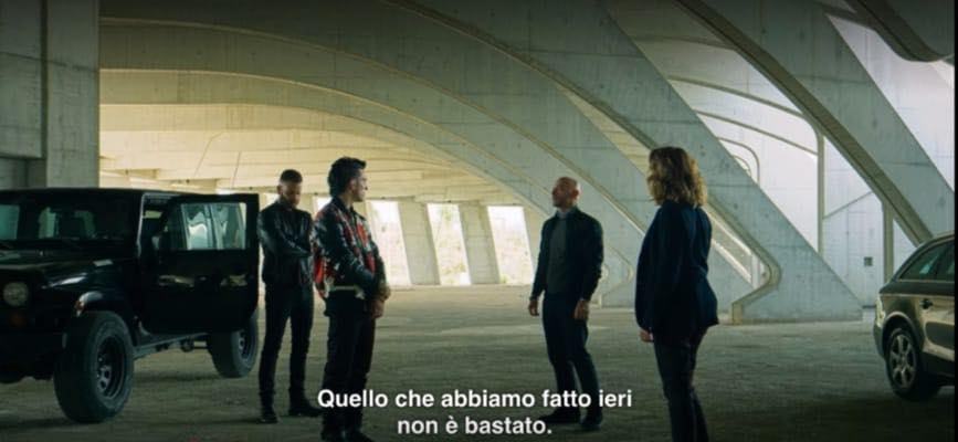 I sotterranei dell’incompiuta Città dello Sport di Santiago Calatrava (2007) sono il teatro dell’incontro tra Aureliano (Borghi), Spadino (Ferrara), Cinaglia (Nigro) e Monaschi (Gerini)