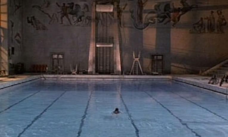 La celebre piscina coperta all’interno del Palazzo delle Terme di Costantino Costantini al Foro Italico decorata con gli splendidi mosaici di Angelo Canevari (1928-37) è dove, nella finzione cinematografica, Gepy (Verdone) accompagna Arianna (Argento) a nuotare.